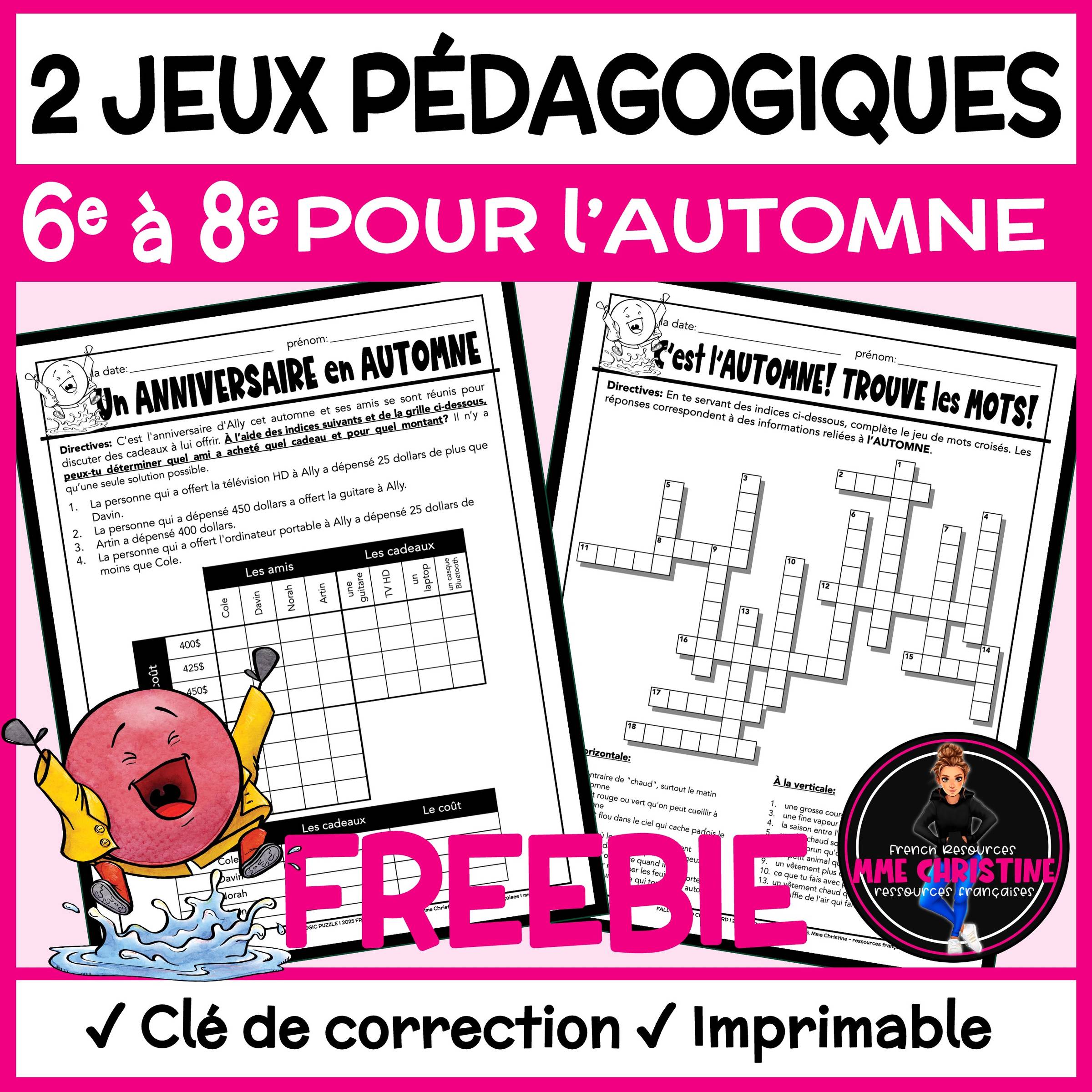 Click below to get this 2-page FALL-THEMED FRENCH FREEBIE for your grade 6-8 FI or Senior French/High School FSL class.